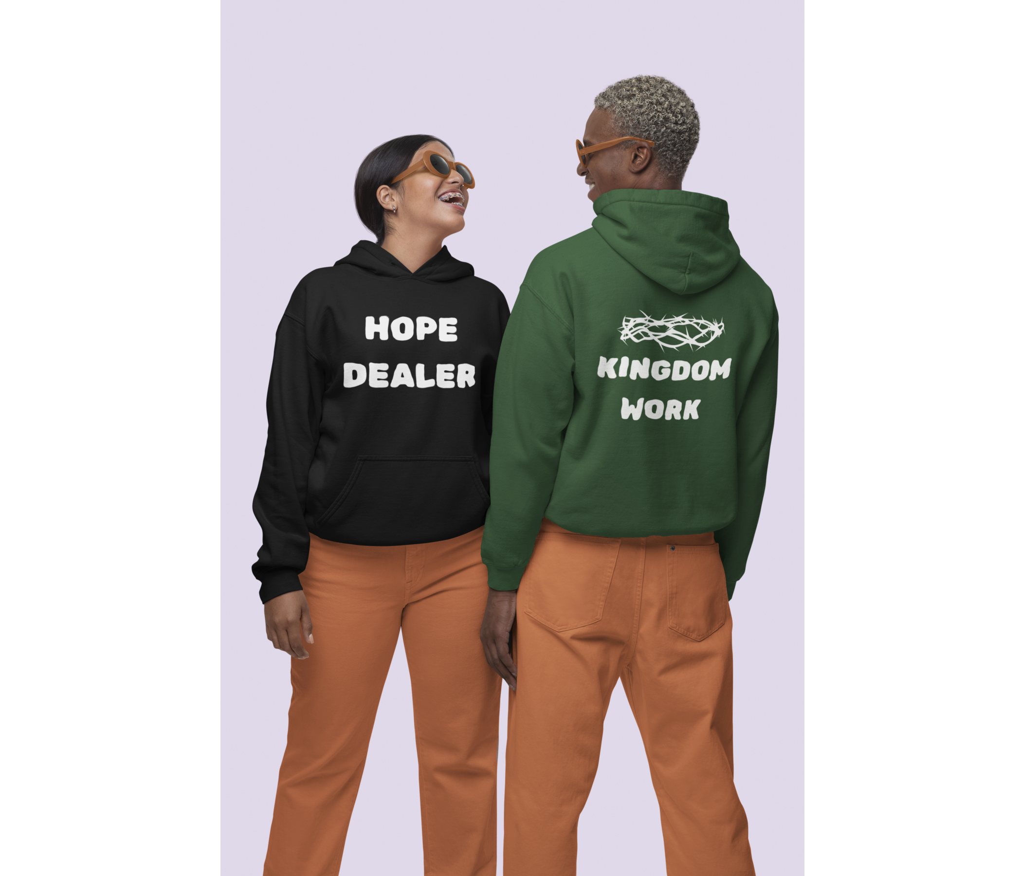 Boldly printed with “Hope Dealer” on the front, this hoodie reminds you and everyone around you that you carry light in a dark world. The back features “Kingdom Work,” because every step you take is part of a bigger mission and a higher purpose.