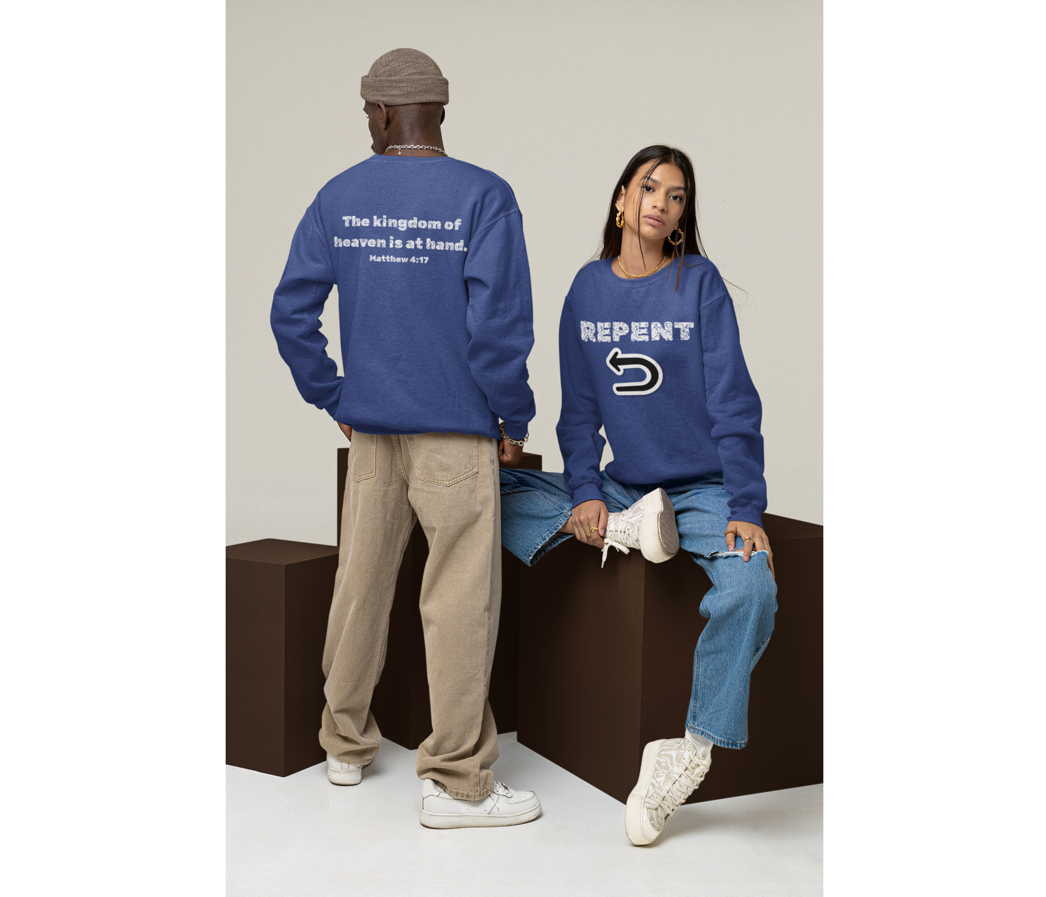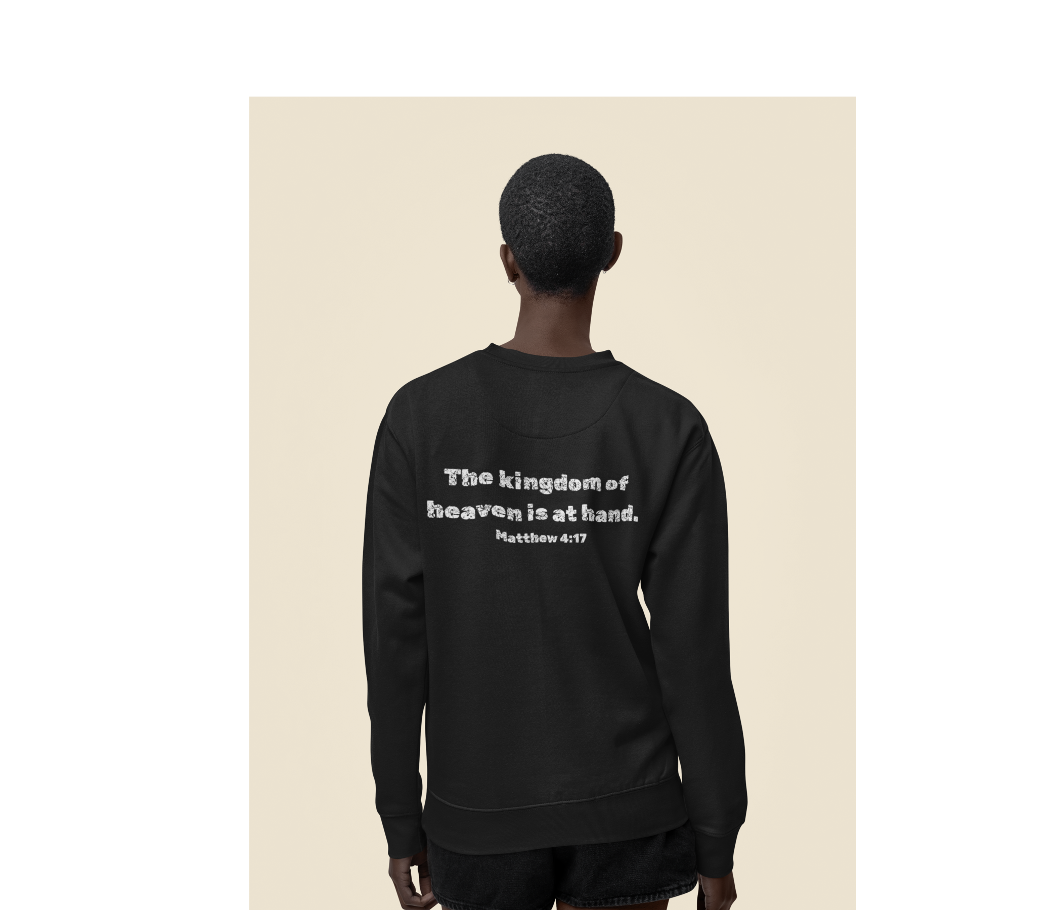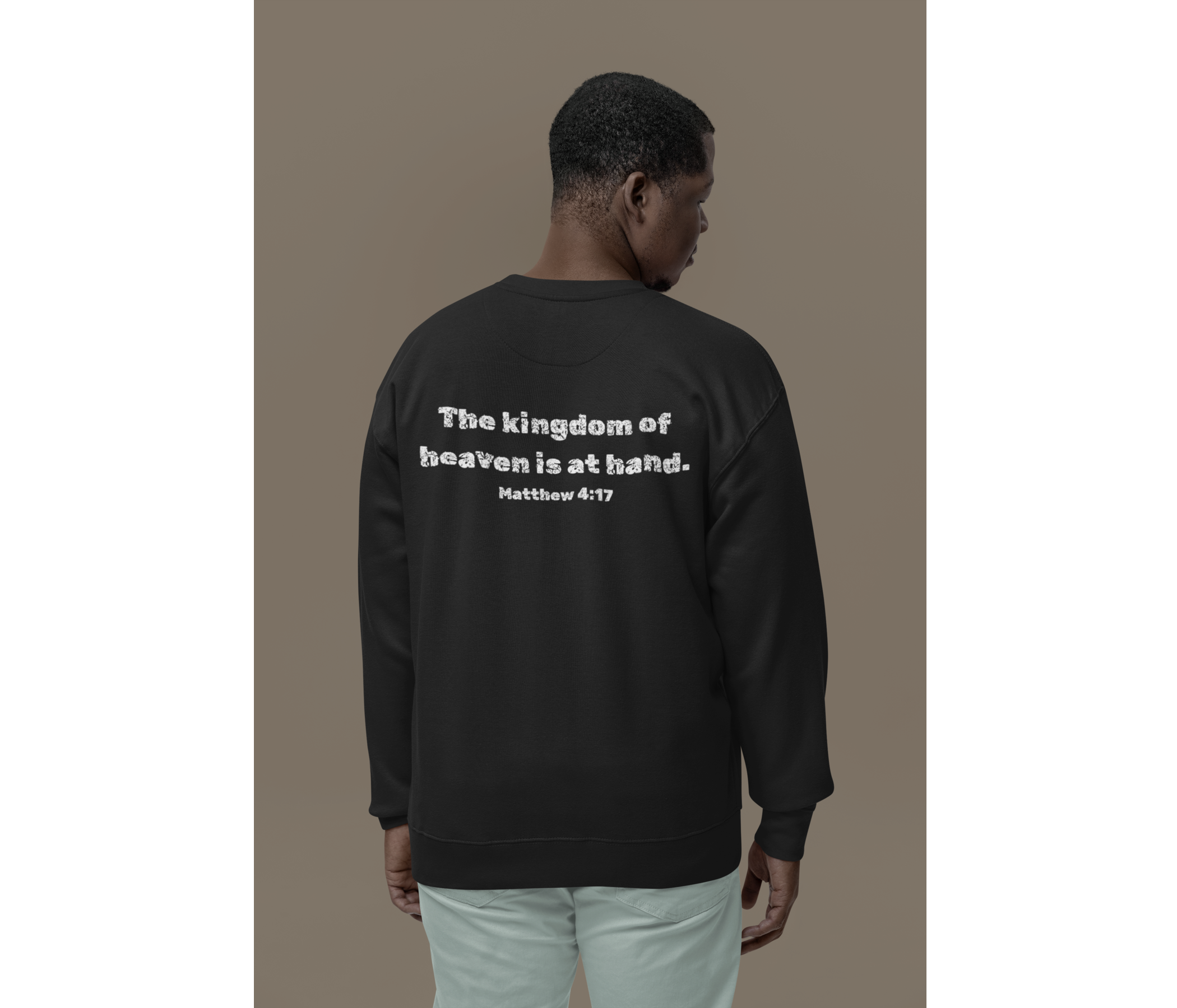 The front features the powerful word “Repent,” designed to spark reflection and conversation. The back declares “The Kingdom of Heaven Is at Hand,” reminding everyone who sees it that the time to seek Him is now. This sweatshirt is perfect for believers passionate about evangelism, truth, and living out the Good News with clarity and conviction.